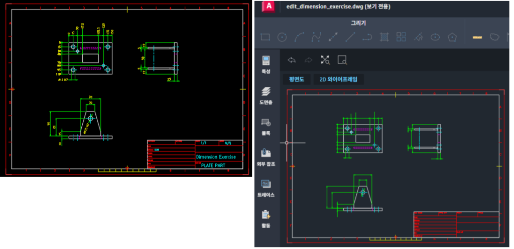 - 증상 : AutoCAD 에서 도면 공유(왼쪽)한 후 AutoCAD Web(오른쪽) 에서 텍스트가 사라집니다.