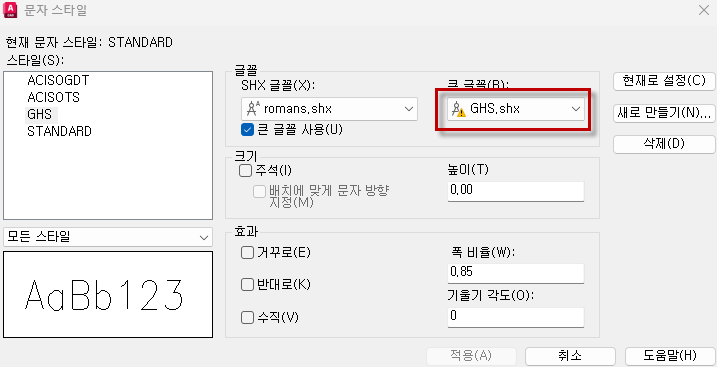 1. AutoCAD 에서 도면 원본이 열린 상태에서 “Style” 하여 누락된 폰트 이름을 확인 합니다.