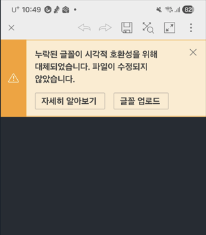 - 해결 방안 : AutoCAD Web 에 누락된 폰트를 업로드 합니다.