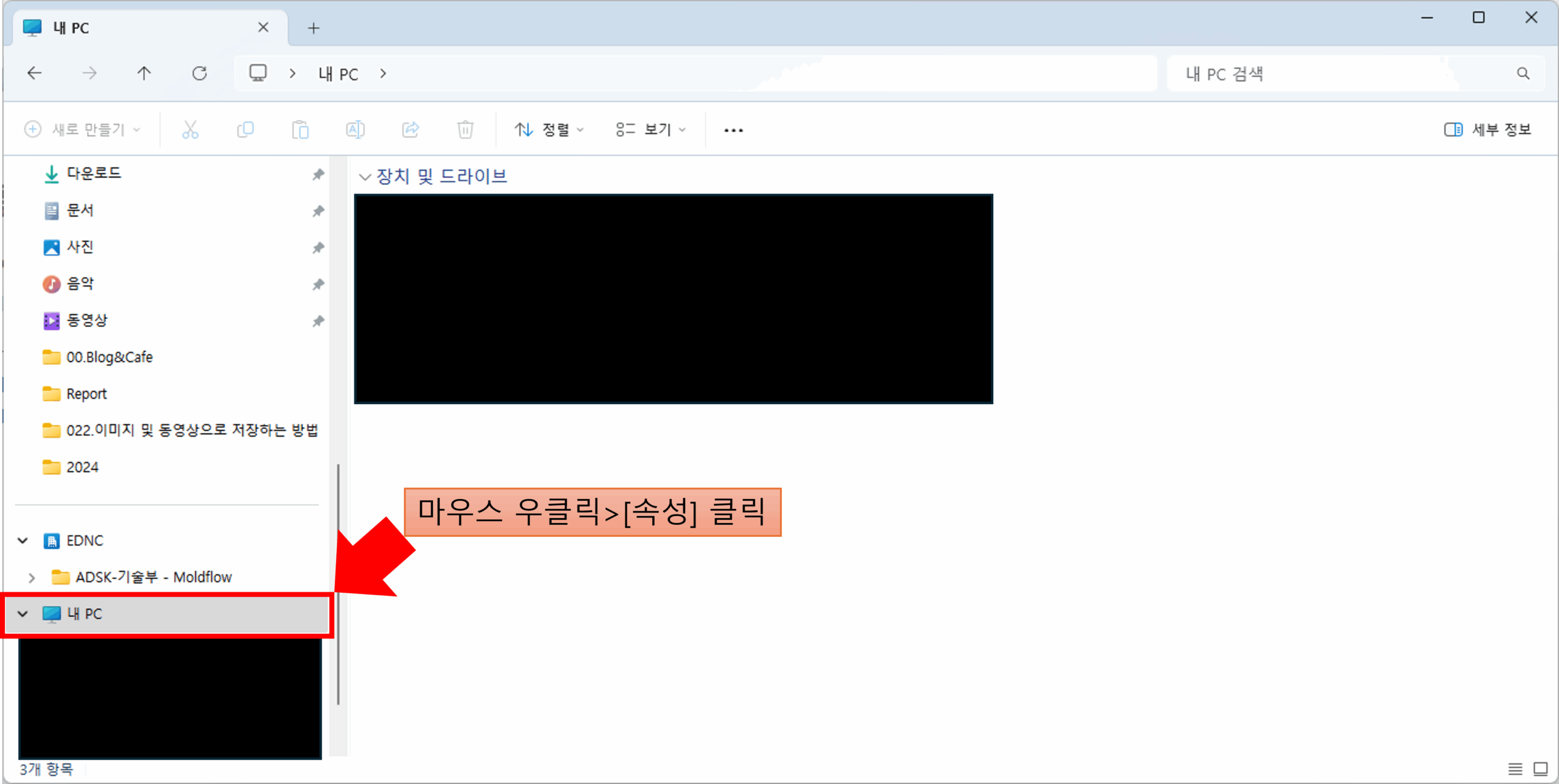1. [파일 탐색기]에서 [내 PC] 선택> 마우스 우클릭> [속성]을 클릭합니다.