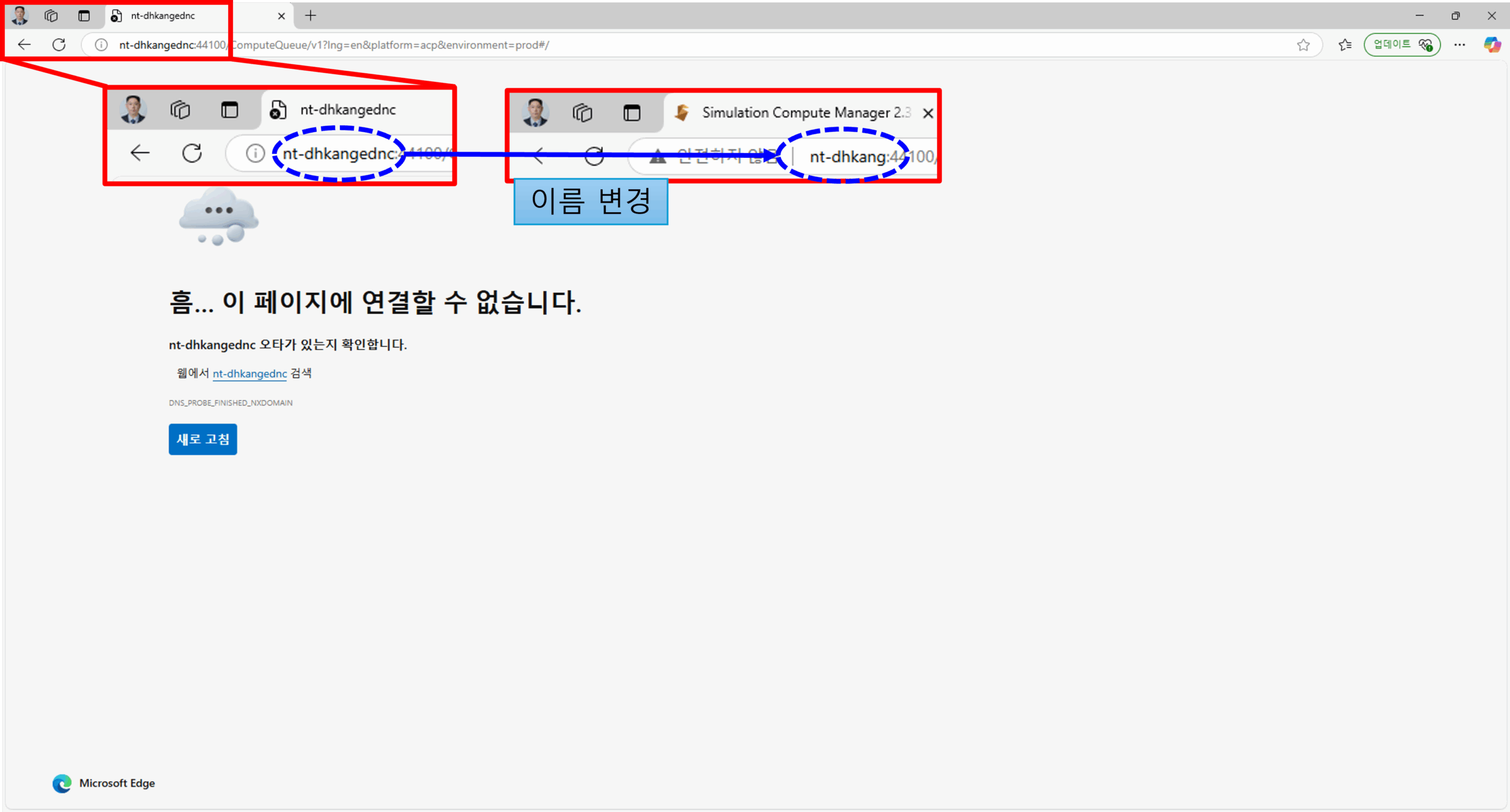 3. 잡 매니저의 주소창을 설정에서 확인한 [장치 이름]과 일치하도록 수정합니다.