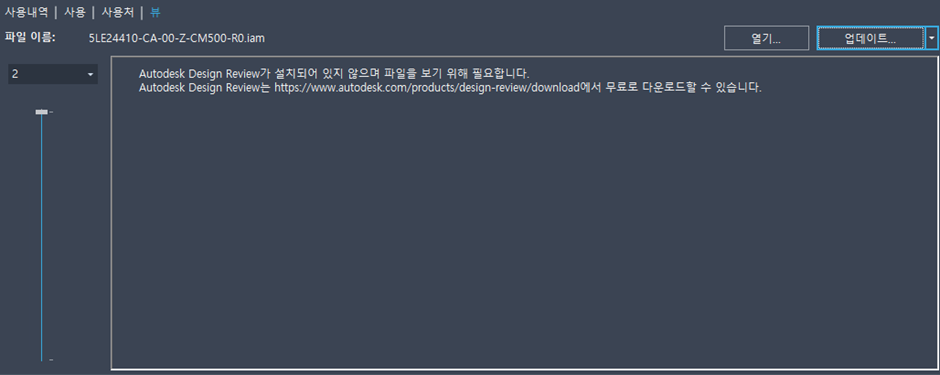 - Autodesk Design Review 설치 파일에 문제로 보이는 메시지 : 뷰어가 바로 보이지 않으며 다운로드 링크가 보입니다.