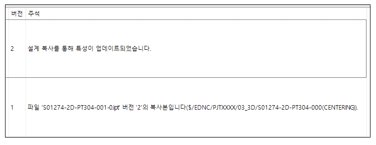 Vault에서 이전 파일을 재 사용할 때 강력한 기능인 설계 복사를 많이 활용하고 있습니다. 기본적으로 설계 복사된 사본 파일의 버전에는 아래의 두 가지 항목으로 자동 생성되기 때문에 이에 대한 원본을 추적할 수 있습니다.