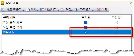 4. 표시됨과 항상 적용될 수 있도록 기본값으로 체크하여 적용합니다. (새로 화면을 열었을 때부터 적용)