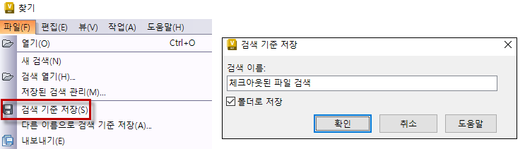 4. 이 찾기 기준은 매번 설정하지 않고 검색 기준 저장을 사용하여 즐겨찾기로 하여 저장 할 수 있습니다.