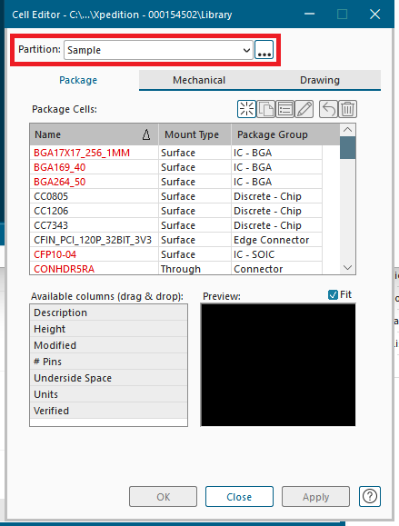 2-2. Cell Editor 창에서 Partition 드롭다운 목록을 Sample로 설정합니다.