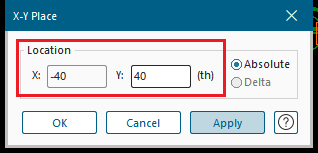X: -40 / Y: 40으로 입력하고 OK를 클릭합니다. 이후 Close를 선택합니다.