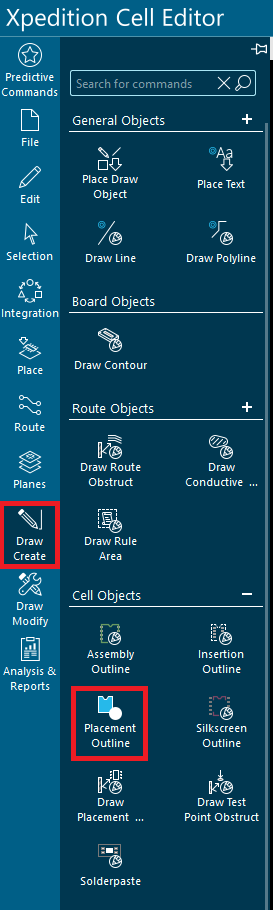 2-14. Draw Create > Cell Objects > Placement Outline을 선택하여 Cell 외곽선을 생성합니다.