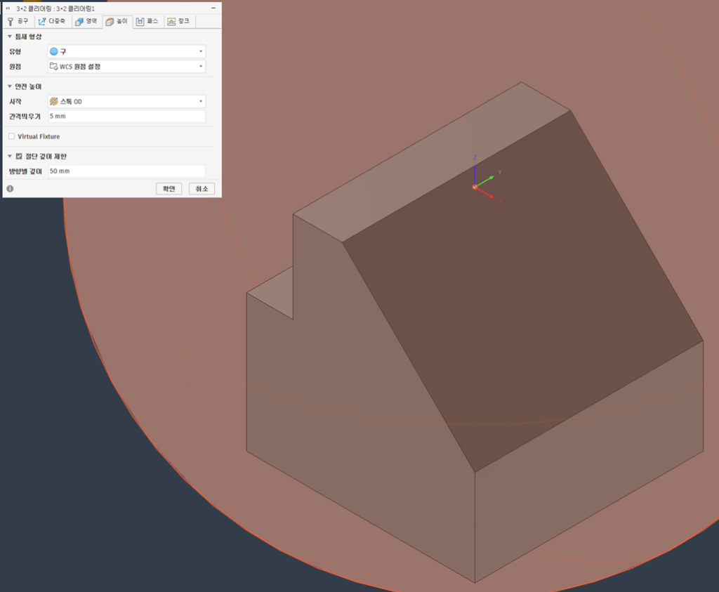 - 동일한 로직: 공차, 스텝오버, 가공여유, 하향가공 방향 등은 기존 3축 방식과 차이가 없습니다.