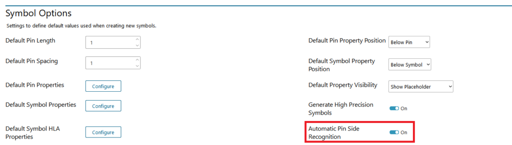※ 참고: Settings > General > Symbol Options에서 Automatic Pin Side Recognition 기능을 활성화하면 핀 방향을 보다 쉽게 설정할 수 있습니다.
