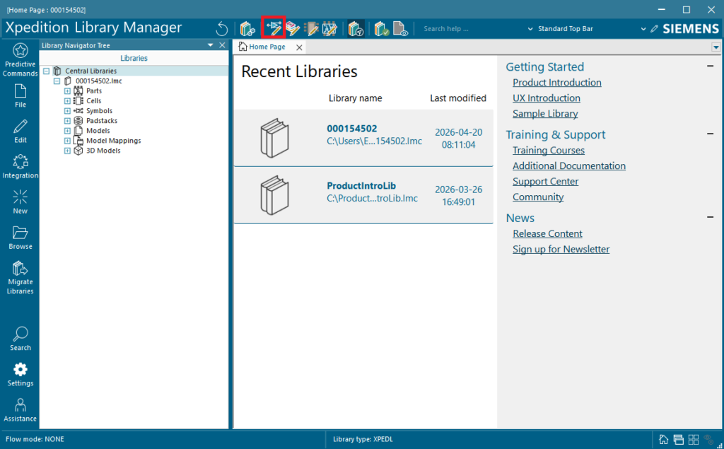 - 다운로드한 EDX 파일에 해당하는 부품을 불러오기 위해 Xpedition Standard Library Manager 2510 프로그램을 실행합니다.
