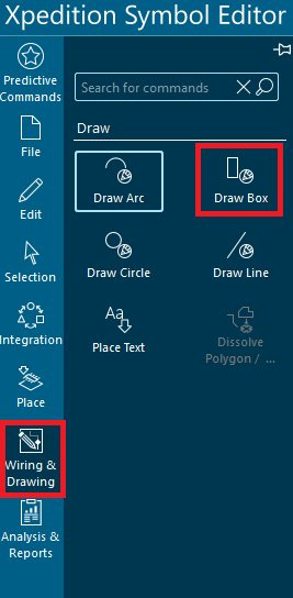 3. 좌측 메뉴의 Wiring and Drawing > Draw Box를 선택한 후, 원점(Origin)을 기준으로 박스를 그립니다.