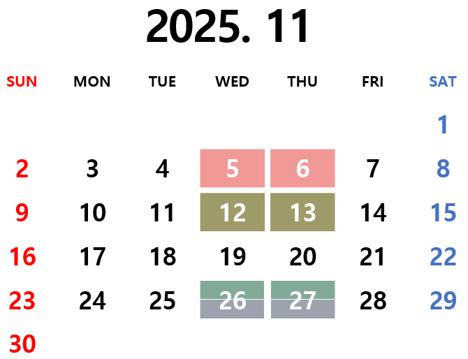 11월 26일 – 27일 (2일 간) / 접수 가능
