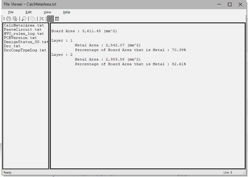Xpedition Std에서는 각 레이어별 구리 면적을 확인할 수 있는 기능을 제공합니다.