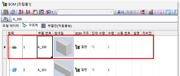 Inventor BOM 부품번호 병합 설정 및 데이터 관리 방법